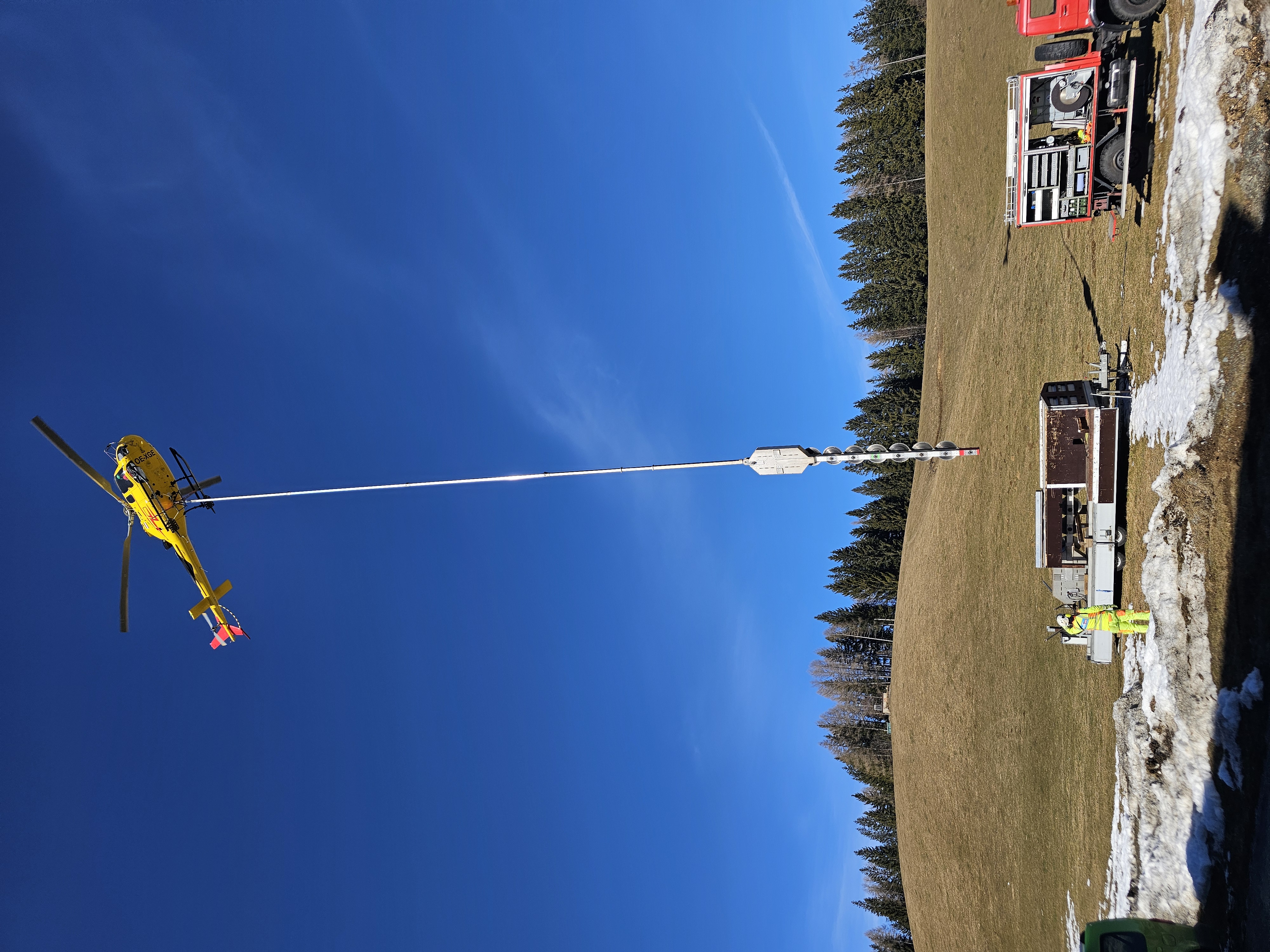 Entlang der L619 sind Baumschnittarbeiten im Gange, bei denen ein Hubschrauber zum Einsatz kommt. Vor allem die hohen Bäume entlang der Straße werden zurückgeschnitten.